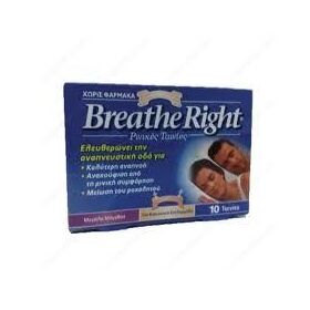 Οι ρινικές ταινίες Breath Right ανοίγουν τη μύτη για καλυτερη αναπνοή και παρέχουν προσωρινή ανακούφιση από τη ρινική συμφόρηση που προκαλείται από το κρύωμα ή τις αλλεργίες. Επίσης η κλειστή μύτη σας αναγκάζει να αναπνέετε από το στόμα, το οποίο μπορεί να προκαλέσει το ροχαλητό. Επιτρέποντας ευκολότερη αναπνοή από τη μύτη, οι ρινικές ταινίες Breath Right μπορούν να βοηθήσουν στην μείωση, ακόμη και στην εξάλειψη του ροχαλητού. Είναι σημαντικό να χρησιμοποιηθεί το κατάλληλο μέγεθος ταινίας για καλύτερα αποτελέσματα. Το μεσαίο μέγεθος προορίζεται για την πλειοψηφία των ενηλίκων. Ενήλικες με μεγαλύτερη μύτη πρέπει να χρησιμοποιήσουν το μεγάλο μέγεθος.