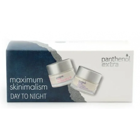 ο πακέτο Panthenol Extra Maximum Skinimalism Day to Night περιλαμβάνει σε προνομιακή τιμή 1 κρέμα ημέρας (50 ml) και 1 κρέμα νύχτας (50 ml), για περιποίηση και θρέψη της επιδερμίδας του προσώπου καθόλη τη διάρκεια της ημέρας.